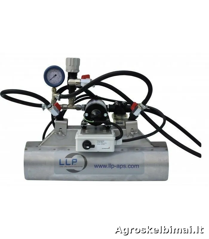 Spaudimą reguliuojantis vožtuvas (užtikrina tolygų spaudimą, todėl sėkla preciziškai apipurškiama).