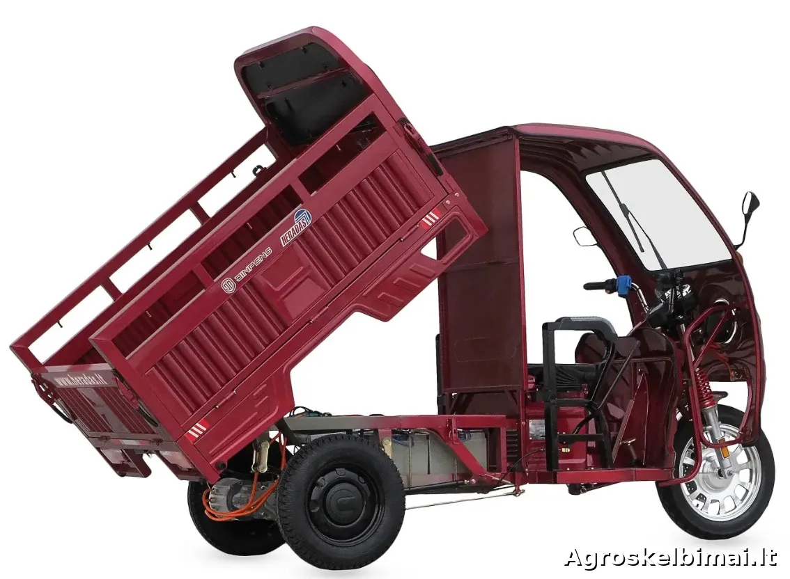 Visiškai tyli, ekologiška transporto priemonė, puikus pagalbininkas sutaupantis laiko ir jėgų ūkyje, sodyboje, gamyboje pervežant krovinius. Atvira neaukšta krovinių platforma labai tinkama ten, kur reikia dažnai rankomis pakrauti/iškrauti nedidelius krovinius. Patogus atsisėdimas vienam arba dviems žmonėms palengvins darbą ten, kur reikia dažnai įlipti/išlipti, arba judėti su nešuliu didesnius atstumus. Šis modelis turi stogą, tai yra labai aktualu dažnai dirbantiems lauke, esant blogam orui.