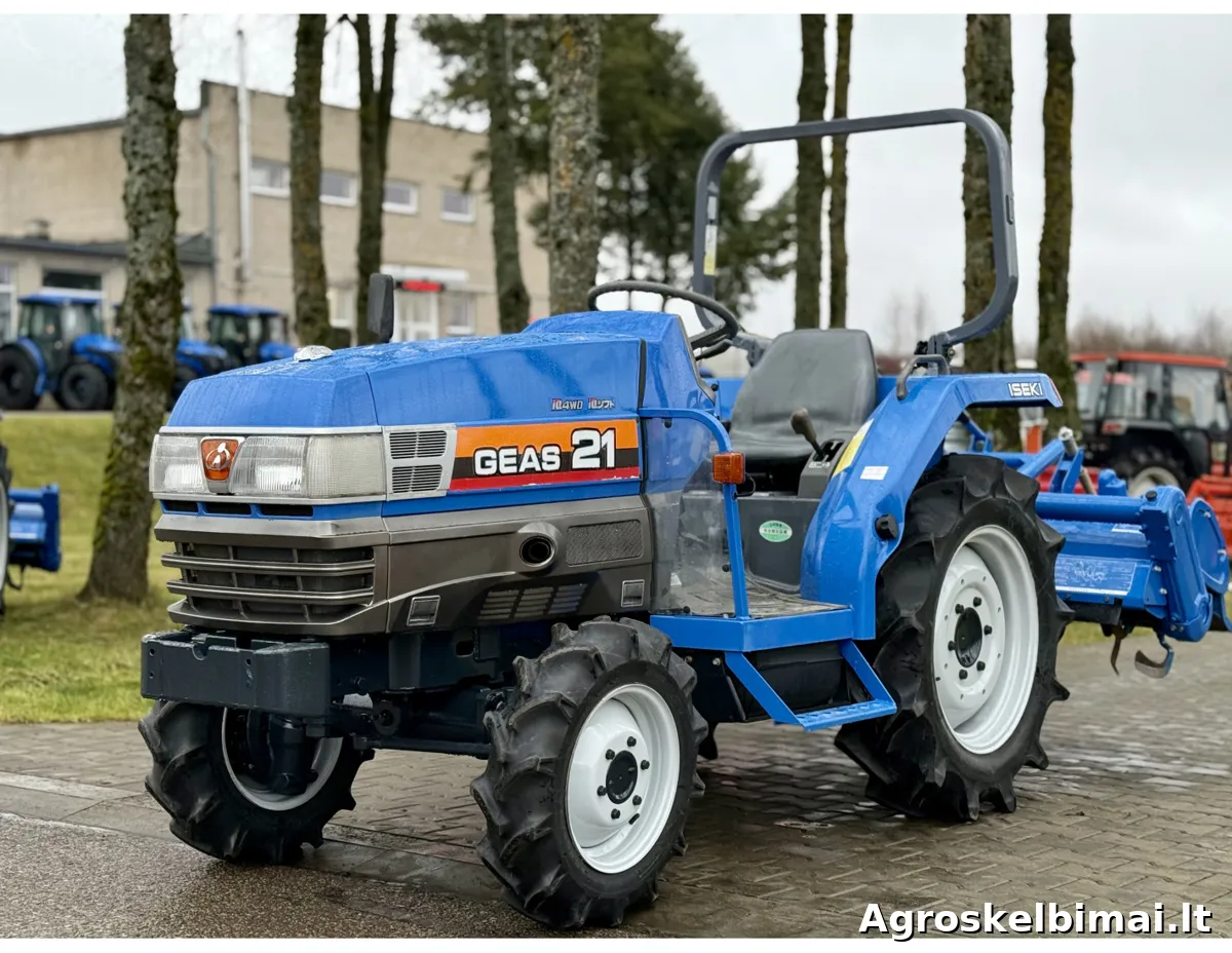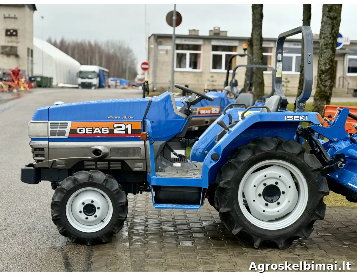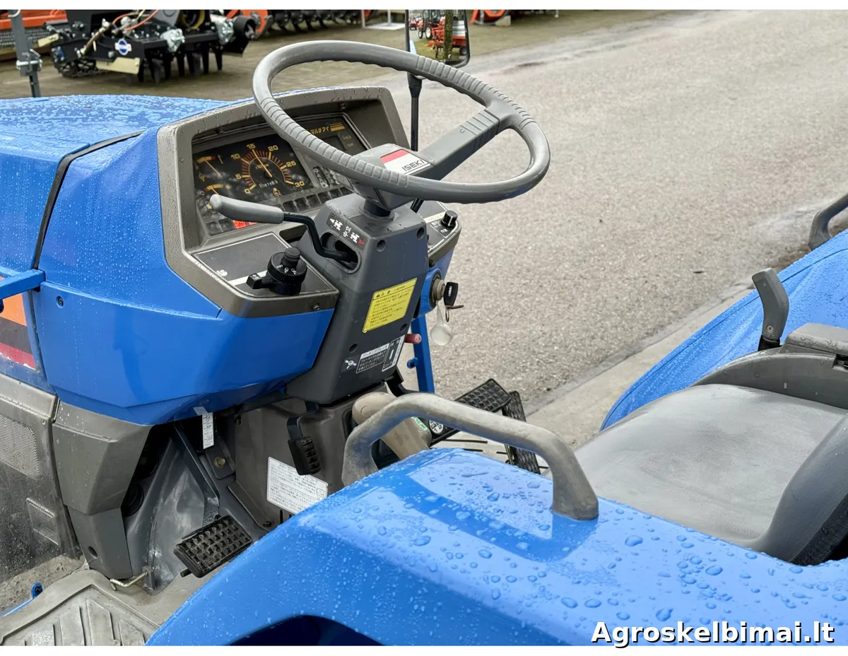 Iseki TG-21 su žemės dirbimo freza (000585) Variklis: 3 cilindrų dyzelinis, skysčiu aušinamas; Variklio galia - 21 AG; Varantieji ratai - 4 WD; Galinių ratų blokiruotė; Pavarų dėžė - machaninė; Vairo stiprintuvas – TAIP; Darbinis velenas; Reversas; Palėtintos pavaros; 3-jų taškų pakaba; Išdirbtos motovalandos - 875 mhr; Su žemės dirbimo freza. Kaina su mokesčiais: 6.850.00 eur. NURODYTA KAINA BE PRISTATYMO! Prekiaujame naujais ir naudotais mini traktoriais (nuo 10 iki 90 AG.), prikabinamomis vėjapjovėmis ir prikabinamu inventoriumi. Mūsų adresas: Jaunystės g. 20 LT-02236 Vilnius www.litechnija.lt info@litechnija.lt