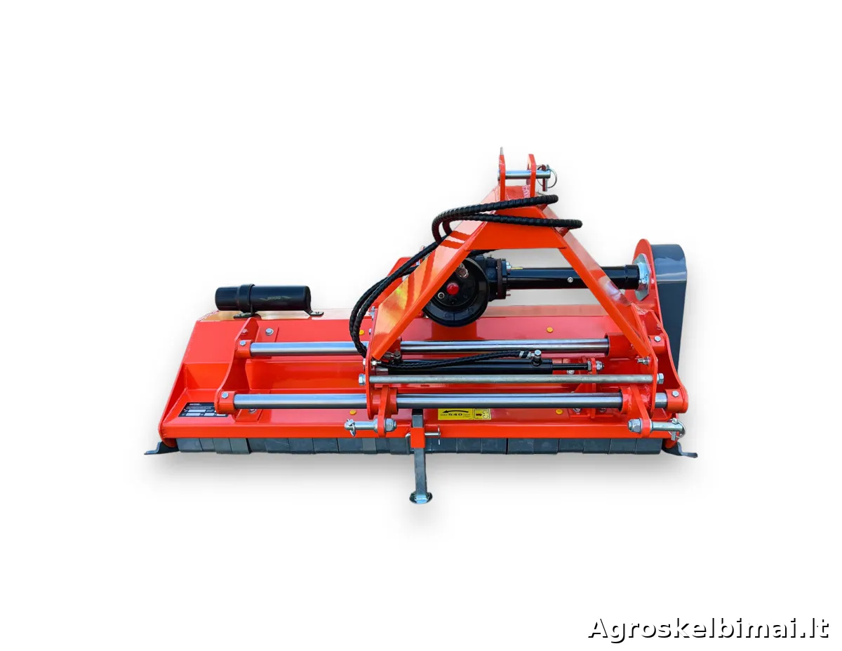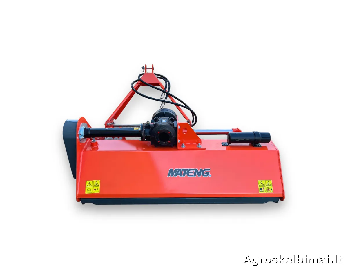 MATENG EFH155 žoliapjovė parduodama kartu su kardaniniu velenu, paruošta darbui.