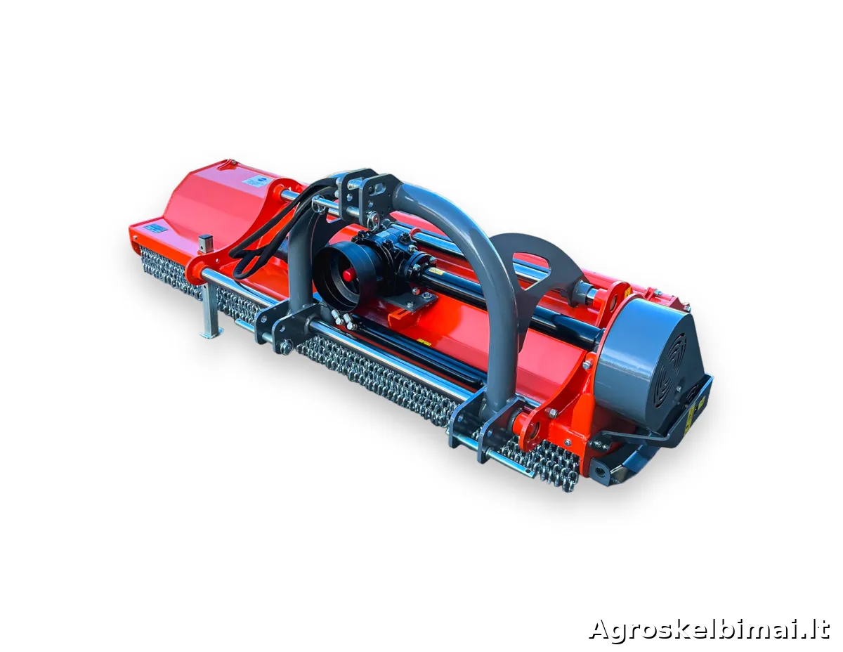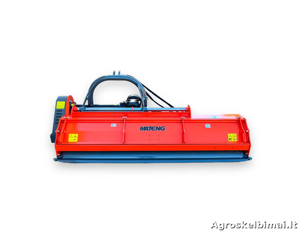 MATENG MENASOR žoliapjovė parduodama kartu su kardaniniu velenu, paruošta darbui.