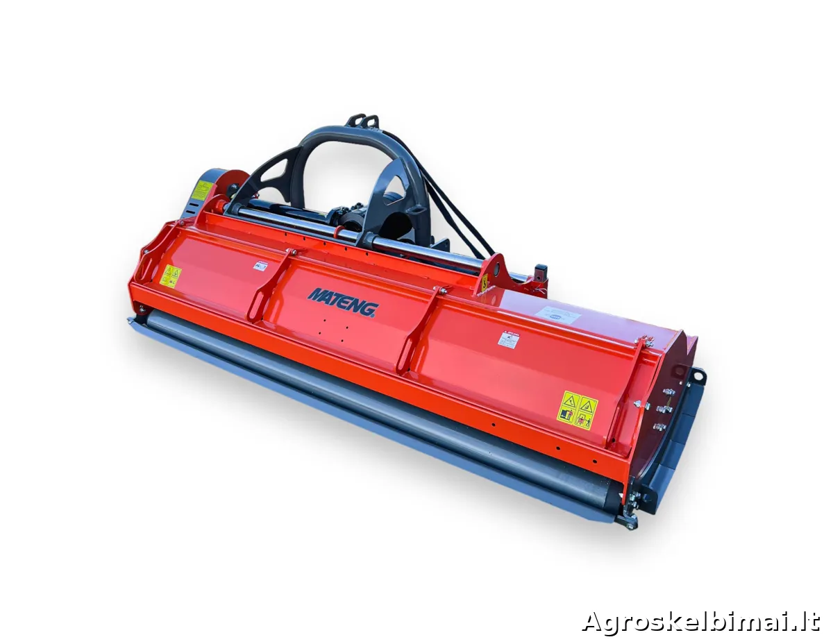 MATENG MENASOR 160 - tvirta, sunkios serijos plaktukinė žoliapjovė (mulčeris), turinti hidraulinę pastūmą į šoną, skirta pjauti-mulčiuoti aukštą ir netvarkingą žolę, smulkius krūmelius ir šakas. Šis mulčeris tinka traktoriams nuo 35AG (arklio galių). Žoliapjovė tvirtinama traktoriaus gale prie trijų taškų prikabinimo sistemos, varoma 540 aps./min greičiu nuo darbinio veleno (PTO) sujungtu kardanu. Reduktorius perduoda sukimą per 4 trapecinius diržus į horizontaliai sumontuotą pjovimo veleną, ant kurio pritvirtinti pjovimo plaktukai. MENASOR žoliapjovė komplektuojama su tvirtais “T” formos plaktukais, kurio vieno svoris - 0,780 Kg. Taip pat esant reikalui galima rinktis “Y” formos peilius (perkami atskirai). Hidraulinio cilindro pagalba galima keisti žoliapjovės padetį - pastumti ją į šoną, horizontalia kryptimi (pajungimui reikalingos dvi hidraulikos jungtys traktoriaus gale). Pjovimo aukštis reguliuojamas trimis padėtimis, gale žoliapjovės esančiu atraminiu volu (2 cm - 4 cm - 6 cm). Žoliapjovė Menasor 160 turi pakeliamą galinį dangtį, tai palengvina peilių veleno valymą ir pjovimo plaktukų keitimą.