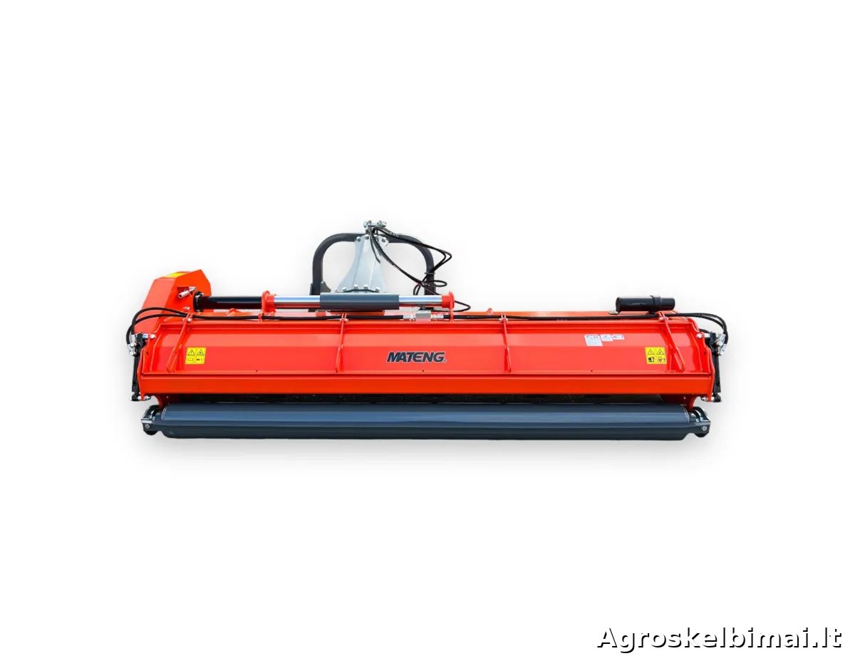MATENG MENASOR-260T - tvirta, sunkios serijos plaktukinė žoliapjovė (mulčeris), turinti hidraulinę pastūmą į šoną, skirta profesionaliam naudojimui, pjauti-mulčiuoti aukštą ir netvarkingą žolę, smulkius krūmus ir šakas. Šis mulčeris tinka traktoriams nuo 80AG (arklio galių). Žoliapjovė tvirtinama traktoriaus gale prie trijų taškų prikabinimo sistemos, varoma 540 aps./min greičiu nuo darbinio veleno (PTO) sujungtu kardanu. Reduktorius perduoda sukimą per 5 trapecinius diržus į horizontaliai sumontuotą pjovimo veleną, ant kurio pritvirtinti pjovimo plaktukai. Plaktukinė žoliapjovė MATENG MENASOR-260T žoliapjovė komplektuojama su tvirtais ir sunkiais “T” formos plaktukais, kurio vieno svoris - 1,070 Kg. Taip pat esant reikalui galima rinktis “Y” formos peilius (parduodami atskirai). Hidraulinio cilindro pagalba galima keisti žoliapjovės padetį - pastumti ją į šoną, horizontalia kryptimi (pajungimui reikalingos dvi hidraulikos jungtys traktoriaus gale). Pjovimo aukštis reguliuojamas trimis padėtimis, gale žoliapjovės esančiu atraminiu volu (2 cm - 4 cm - 6 cm). Žoliapjovė Menasor-260T turi hidraulinį pakeliamą galinį dangtį, tai palengvina peilių veleno valymą ir pjovimo plaktukų keitimą (pajungimui reikalingos keturios hidraulikos jungtys traktoriaus gale).