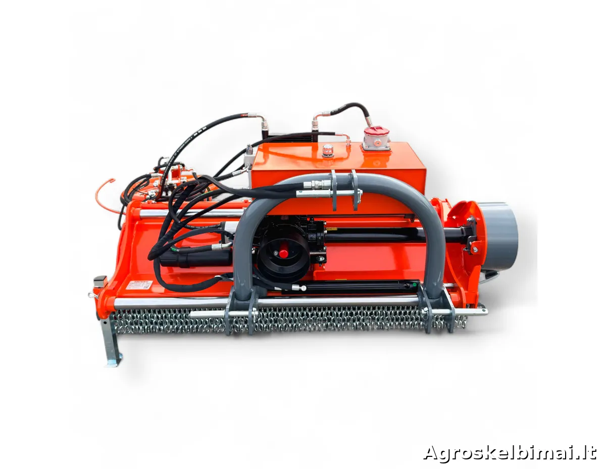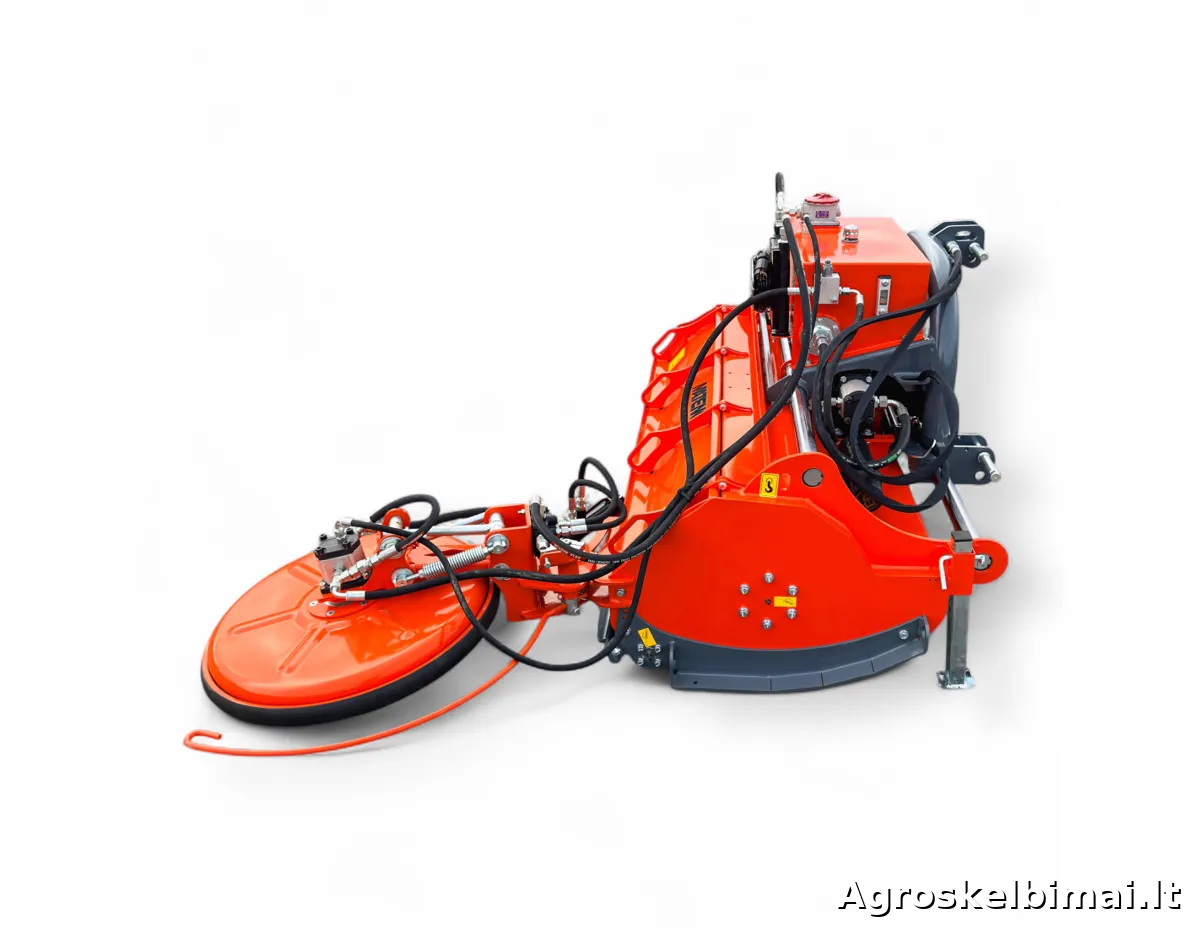 Hidraulinė pastūma į šoną ir šoninis pjovimo diskas, užtikrinantis efektyvų darbą aplink medžius ir krūmus.