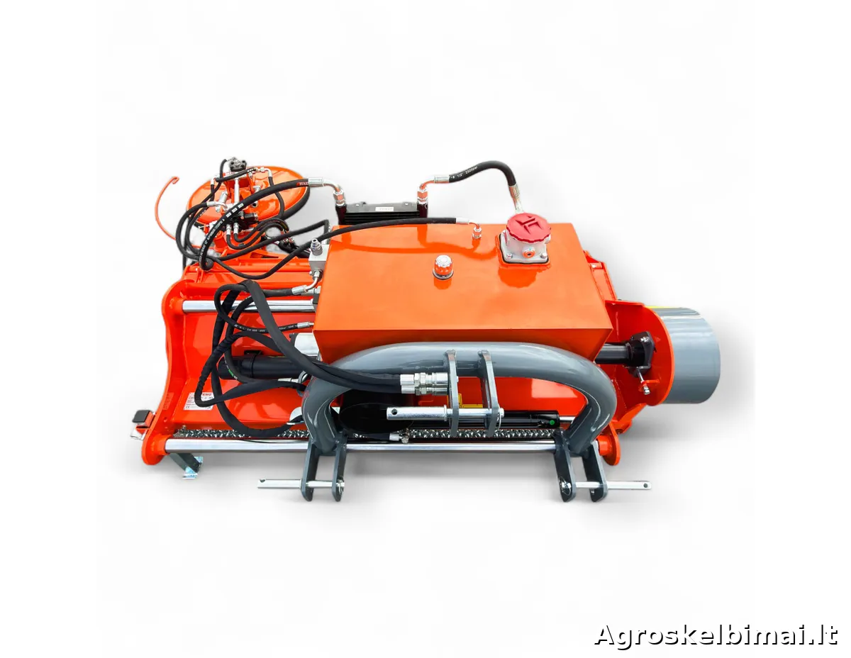 Hidraulinė pastūma į šoną ir šoninis pjovimo diskas, užtikrinantis efektyvų darbą aplink medžius ir krūmus.