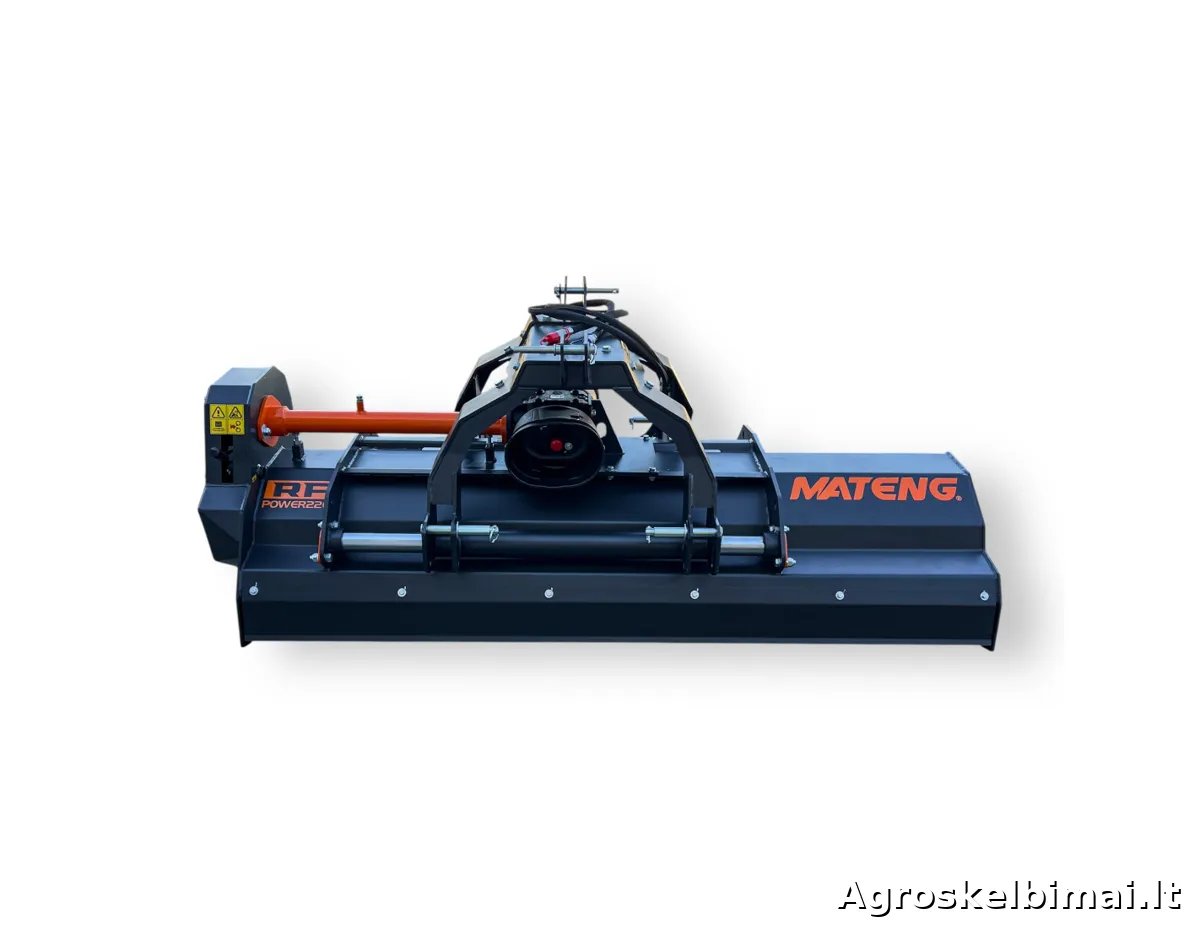 MATENG RF Power 200 - sunki, tvirtos konstrukcijos plaktukinė žoliapjovė (mulčeris) su hidrauline pastūma į šoną, skirta profesionaliam naudojimui, pjauti-mulčiuoti aukštą ir netvarkingą žolę, smulkius krūmus ir šakas. Šis mulčeris tinka traktoriams nuo 60 AG (arklio galių). Žoliapjovė tvirtinama traktoriaus gale prie trijų taškų prikabinimo sistemos, varoma 540 aps./min greičiu nuo darbinio veleno (PTO) sujungtu kardanu. RF Power 200 žoliapjovę galima kabinti ir ant traktoriaus priekinės pakabos (1000 aps/min PTO). Reduktorius perduoda sukimą per 4 trapecinius diržus į horizontaliai sumontuotą pjovimo veleną, ant kurio pritvirtinti pjovimo plaktukai. RF Power 200 žoliapjovė komplektuojama su tvirtais “T” formos plaktukais, kurio vieno svoris - 0,780 Kg. Hidraulinio cilindro pagalba galima keisti žoliapjovės padetį - pastumti ją į šoną, horizontalia kryptimi (pajungimui reikalingos dvi hidraulikos jungtys). Pjovimo aukštis reguliuojamas trimis padėtimis, gale žoliapjovės esančiu volu. Nupjautos žolės išmetimo srautą galima nukreipti už galinio veleno arba prieš jį, tokiu būdų žolė dar labiau susmulkinama (sumulčiuojama).