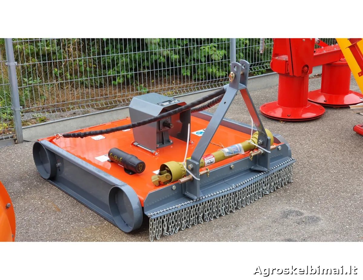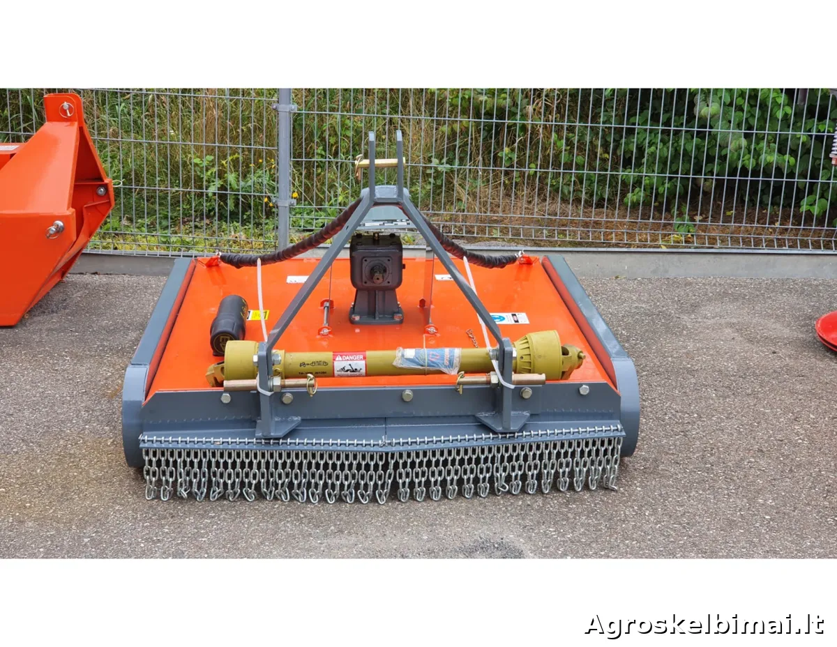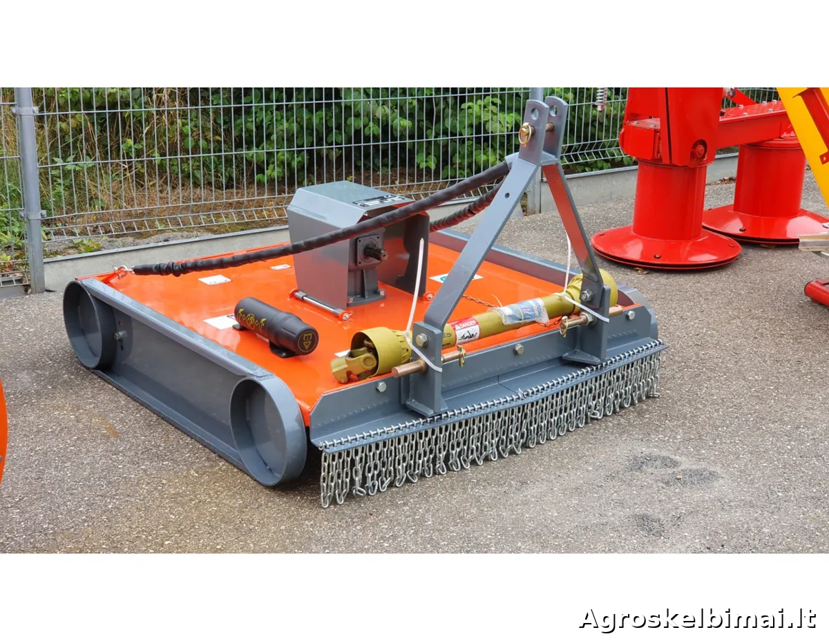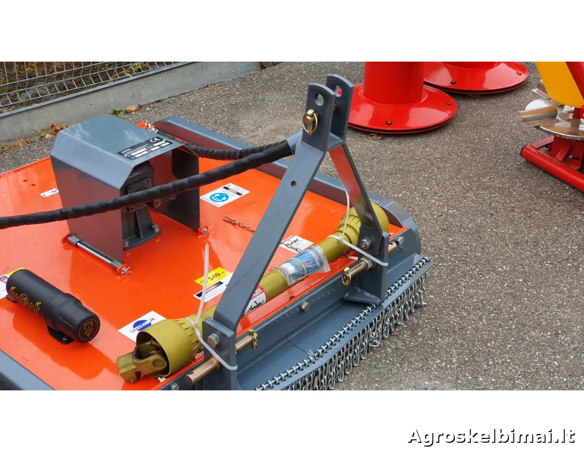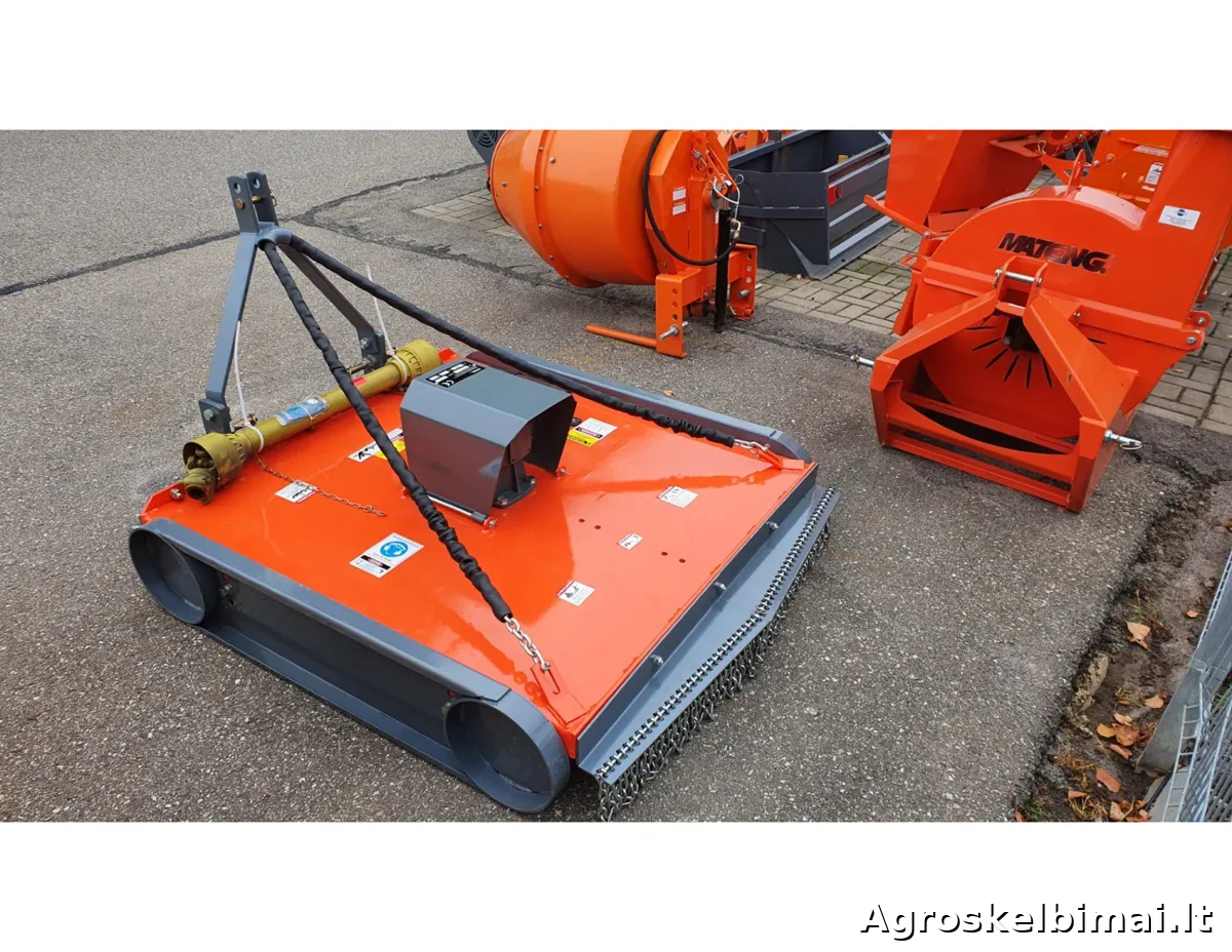 MATENG TM120 žoliapjovė parduodama kartu su kardaniniu velenu, paruošta darbui.