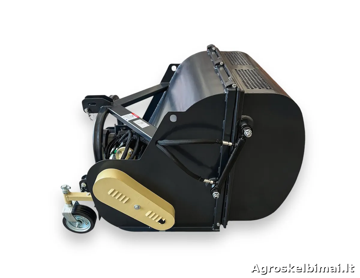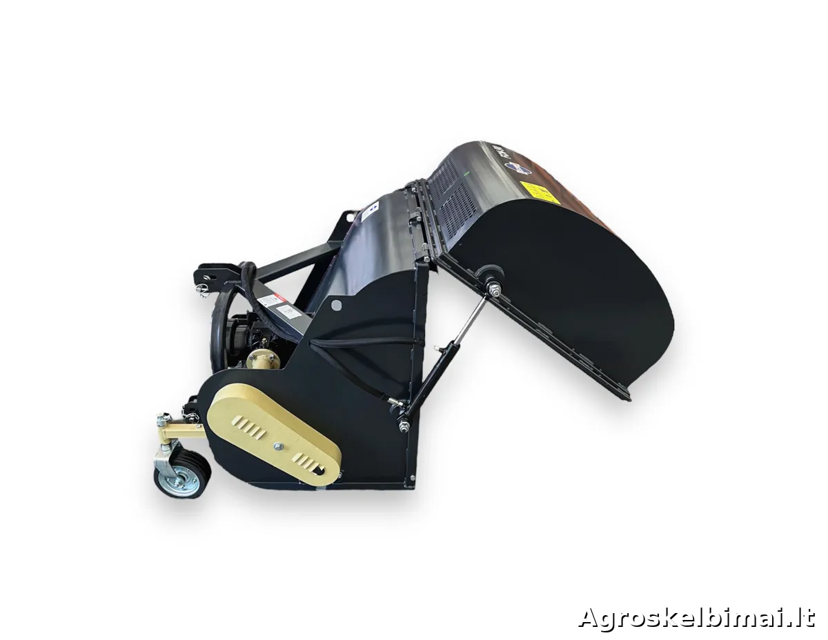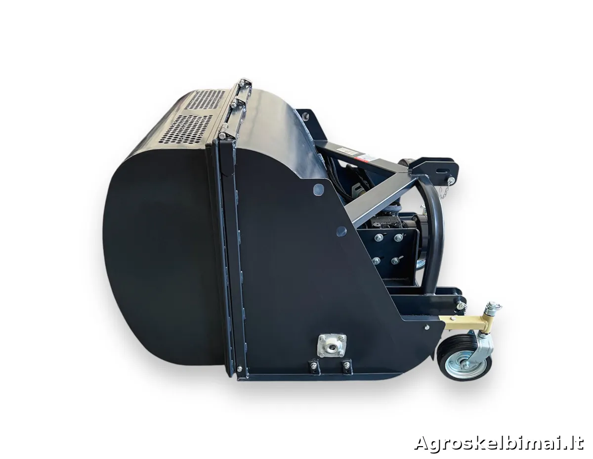 FCN105 - plaktukinė žoliapjovė (mulčeris) su surinkimo bunkeriu, skirta pjauti - mulčuoti aukštą ir netvarkingą žolę, bei ją surinkti. Šis mulčeris tinka traktoriams nuo 18 AG (arklio galių). Žoliapjovė tvirtinama traktoriaus gale prie trijų taškų prikabinimo sistemos, varoma 540 aps./min greičiu nuo darbinio veleno (PTO) sujungtu kardanu. Reduktorius perduoda sukimą per 3 trapecinius diržus į horizontaliai sumontuotą pjovimo veleną, ant kurio pritvirtinti pjovimo plaktukai. Plaktukinė žoliapjovė FCN-105 komplektuojama su lengvais skardiniais plaktukais, kurio vieno svoris - 150 gramų. Taip pat esant reikalui galima rinktis “Y” formos peiliukus (parduodami atskirai). Žolės surinkimo bunkeris yra 550 litrų talpos, atidaromas hidraulikos pagalba (pajungimui reikalingos dvi hidraulikos jungtys traktoriaus gale). Modelis: MATENG FCN105 Rekomenduojama traktoriaus galia (AG): 18-25 Darbinis plotis (cm): 105 Plaktukų kiekis (vnt.): 24 Plaktuko svoris (kg): 0,150 Darbinio veleno - PTO greitis (aps./min.): 540 Prikabinimo tipas: Trijų taškų sistema Prikabinimo kategorija: 1 Surinkimo bunkerio talpa (L): 550 Surinkimo bunkerio atidarymas: Yra hidraulinis atidarymas Diržų kiekis (vnt.): 3 Svoris (kg): 322 Kardaninis velenas: Yra komplekte, 6-ių išdrožų abiejuose galuose Prekės būklė: Nauja Garantija: 12 mėnesių Gamintojas: "MATENG", Kinija Prekiaujame naujais ir naudotais mini traktoriais (nuo 10 iki 90 AG.), prikabinamomis vėjapjovėmis ir prikabinamu inventoriumi. Mūsų adresas: Jaunystės g. 20 LT-02236 Vilnius www.litechnija.lt info@litechnija.lt
