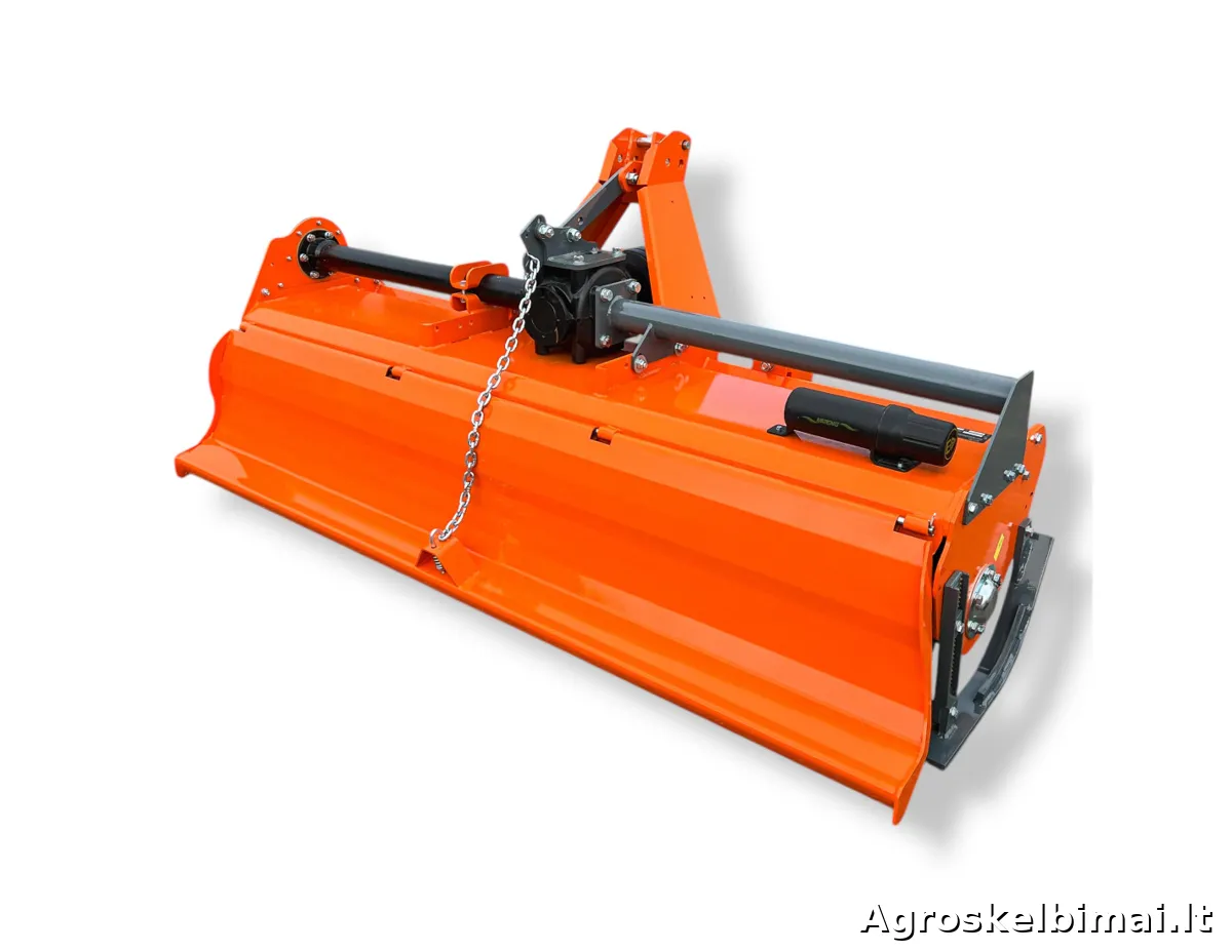 MATENG CTL-210 žemės dirbimo freza parduodama kartu su kardaniniu velenu, paruošta darbui.