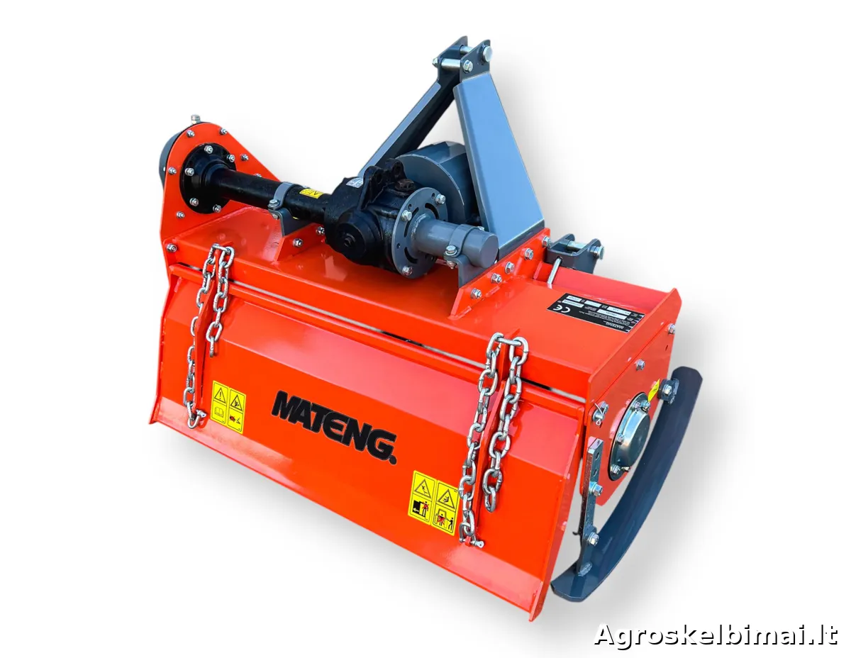 "MATENG" F.T/M110 žemės dirbimo freza parduodama kartu su kardaniniu velenu, paruošta darbui.