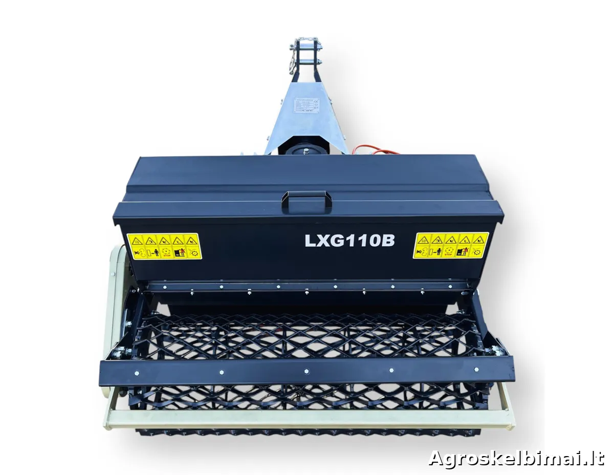 Vertikali žemės dirbimo freza LXG110B su sėjamąja ir volu. Kompaktiška ir universali vertikalaus veikimo freza LXG110B su integruota sėjamąja - puikus sprendimas efektyviam dirvos paruošimui ir sėjai vienu važiavimu. Tinka nedideliems ir vidutinio dydžio ūkiams, užtikrina tolygų dirvos išdirbimą ir sėklų paskleidimą. Dirvos purenimas ir sėja vienu metu, kompaktiškas dydis, patikima konstrukcija ir paprasta priežiūra - vertikali žemės dirbimo freza LXG110B su sėjamąja! Modelis: LXG110B Rekomenduojama traktoriaus galia (AG): nuo 25 Darbinis plotis (cm): 110 Darbinis gylis (cm): 20 Pavara: Krumplinė Peilių kiekis (vnt.): 10 Darbinio veleno - PTO greitis (aps./min.): 540 Prikabinimo tipas: Trijų taškų sistema Prikabinimo kategorija: 1 Svoris (kg): 374 Kardaninis velenas: Yra komplekte, 6-ių išdrožų abiejuose galuose Prekės būklė: Nauja Garantija: 12 mėnesių Prekiaujame naujais ir naudotais mini traktoriais (nuo 10 iki 90 AG.), prikabinamomis vėjapjovėmis ir prikabinamu inventoriumi. Mūsų adresas: Jaunystės g. 20 LT-02236 Vilnius www.litechnija.lt