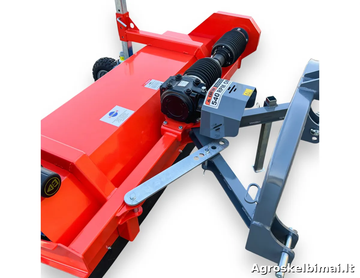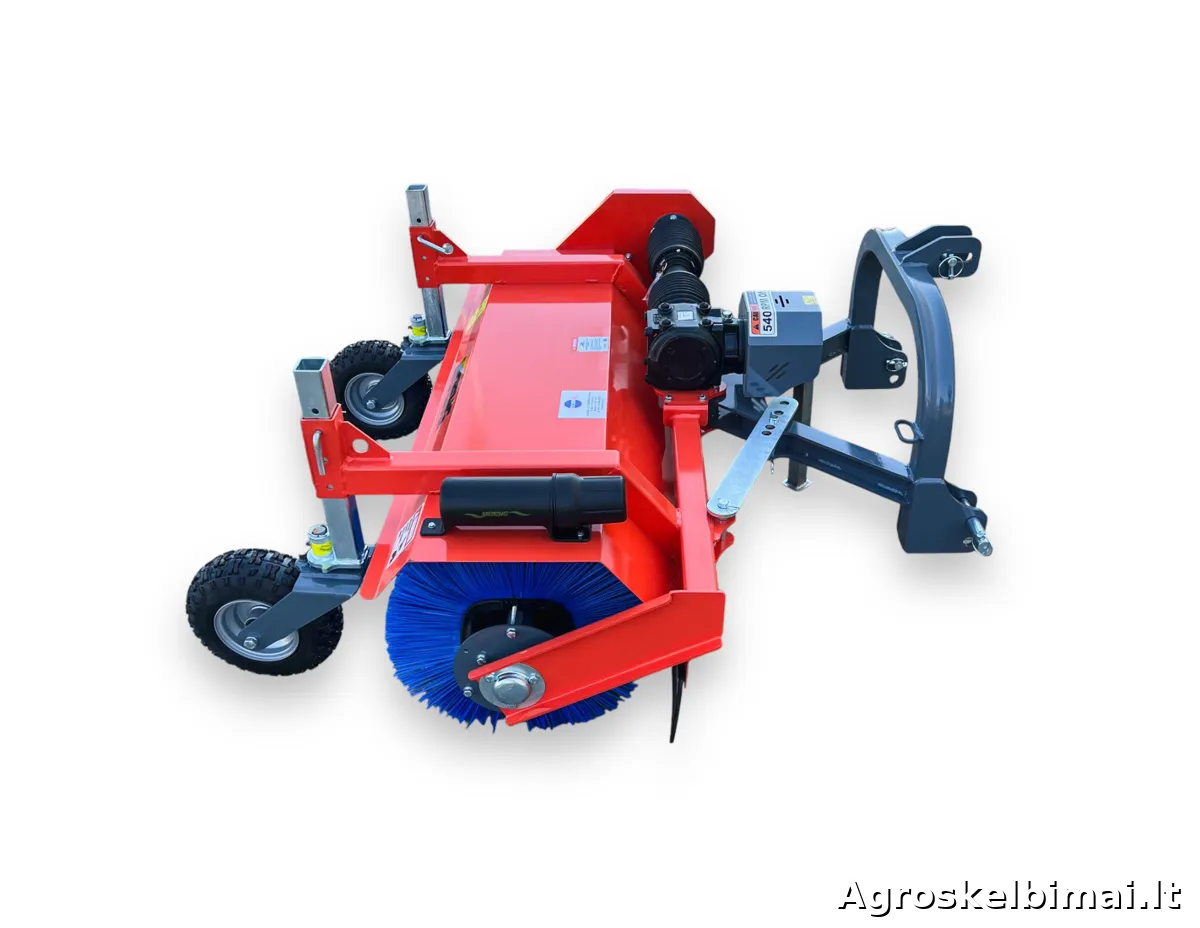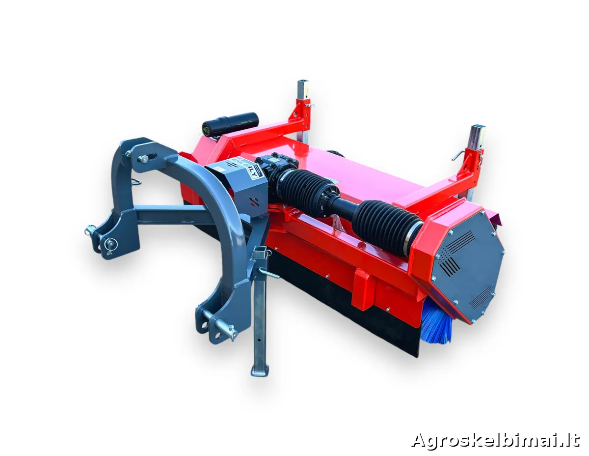 Šluota MATENG SWLT-140 - prikabinama prie traktoriaus šluota, tinkama kelių, gatvių, aikštelių, sandėlių ir kitų plotų šlavimui. Žiemos sezonu šluota MATENG SWLT-140 gali būti naudojama sniego valymui nuo šaligatvių, takelių ar aikštelių. Todėl šis modelis yra populiarus ir dažnai naudojamas komunaliniame sektoriuje. Šluota SWLT-140 tvirtinama traktoriaus gale prie trijų taškų prikabinimo sistemos, varoma 540 aps/min. greičiu nuo darbinio veleno (PTO) sujungtu kardanu. Reduktorius per grandininę pavarą perduoda sukimą į horizontaliai sumontuotą šlavimo veleną. Šluotoje sumontuoti 520 mm skersmens šlavimo žiedai. Šlavimo kampas - 25°, reguliujamas mechaniniu būdu. Yra galimybė sumontuoti hidraulinį cilindrą šluotos pasukimo kampo reguliavimui (hidraulikos komplektas parduodamas atskirai). Šluota MATENG SWLT-140 turi du pneumatinius ratukus, kurie palengvina šluotos naudojimą važiuojant per duobes, bei padeda ją tinkamai sureguliuoti. MATENG SWLT140 parduodama kartu su kardaniniu velenu, paruošta darbui. Modelis: SWLT-140 Rekomenduojama traktoriaus galia (AG): 16-30 Darbinis plotis (cm): 142 Šlavimo žiedo skersmuo (mm): 520 Šlavimo kampas: 25 laipsniai, mechaninis reguliavimas Pavara: Grandininė Darbinio veleno - PTO greitis (aps./min.): 540 Prikabinimo tipas: Trijų taškų sistema Prikabinimo kategorija: 1 ir 2 Svoris (kg): 185 Prekės būklė: Nauja Garantija: 12 mėnesių Gamintojas: "MATENG", Kinija Prekiaujame naujais ir naudotais mini traktoriais (nuo 10 iki 90 AG.), prikabinamomis vėjapjovėmis ir prikabinamu inventoriumi. Mūsų adresas: Jaunystės g. 20 LT-02236 Vilnius www.litechnija.lt