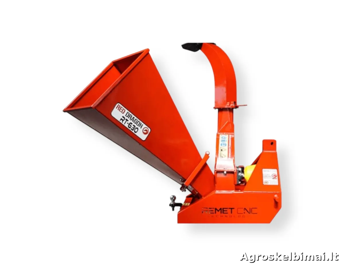 Šakų smulkintuvas REMET RT630 skirtas smulkinti šakas ir kamienus, kurių skersmuo iki 12 cm, bei kitas medines medžiagas, pvz. lentpjūvės atraižas. Gaunamų skiedrų storį galima reguliuoti, keturis keičiamus ašmenis nustatant jų padėtį priešpriešinių ašmenų atžvilgiu. Peiliai prisukti prie 620 mm skersmens pjovimo disko, kuris savo svorio dėka suteikia inerciją. Smulkintuvas turi gaubtus, kurie užtikrina darbo saugumą. Išmetimo vamzdį, siekiant nukreipti skiedrų srautą norima kryptimi, galima pasukti 360°. Šakų smulkintuvas REMET RT630 pasižymi dideliu našumu bei darbo patogumu. Gautas skiedras galima naudoti kaip kurą arba kaip medžiagą kompostavimui ar pakratą po krūmais.