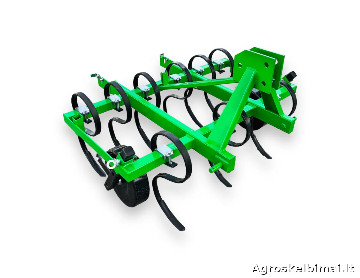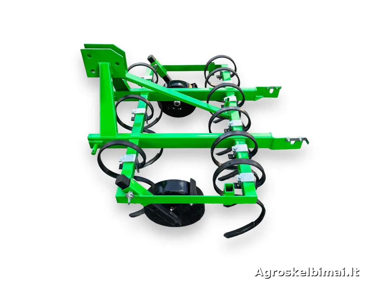 Dviejų eilių, 1,2m pločio kultivatorius "Farmostal". Kultivatorius su spyruokliniais "S" formos dantimis skirtas purenti, trupinti ir maišyti paviršinį dirvos sluoksnį.