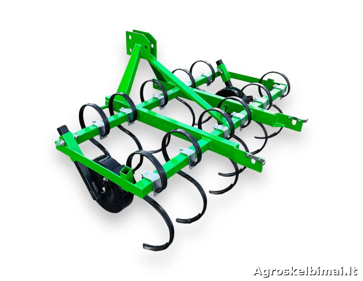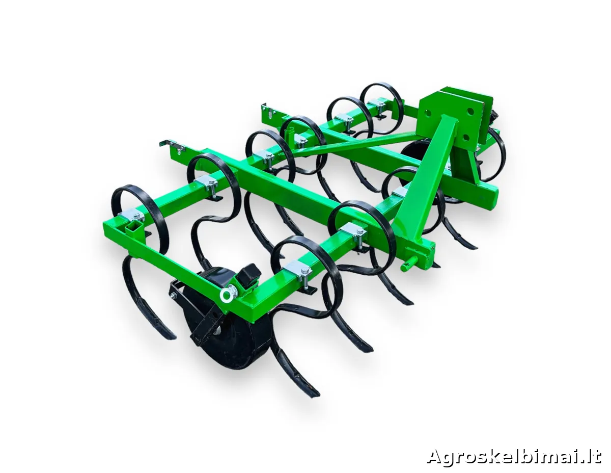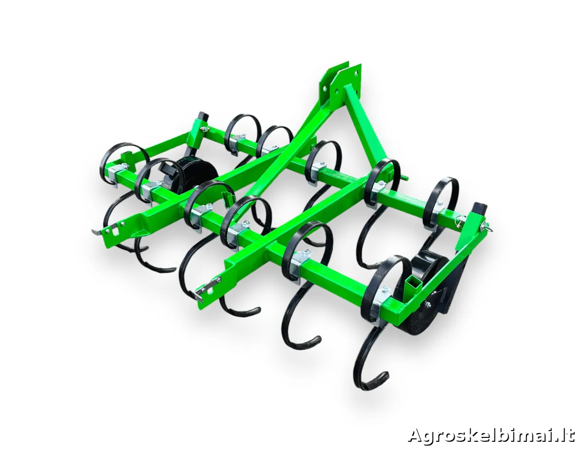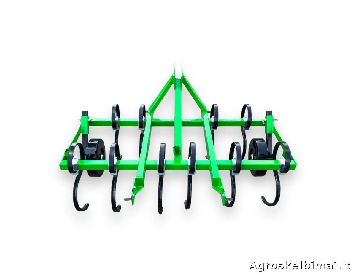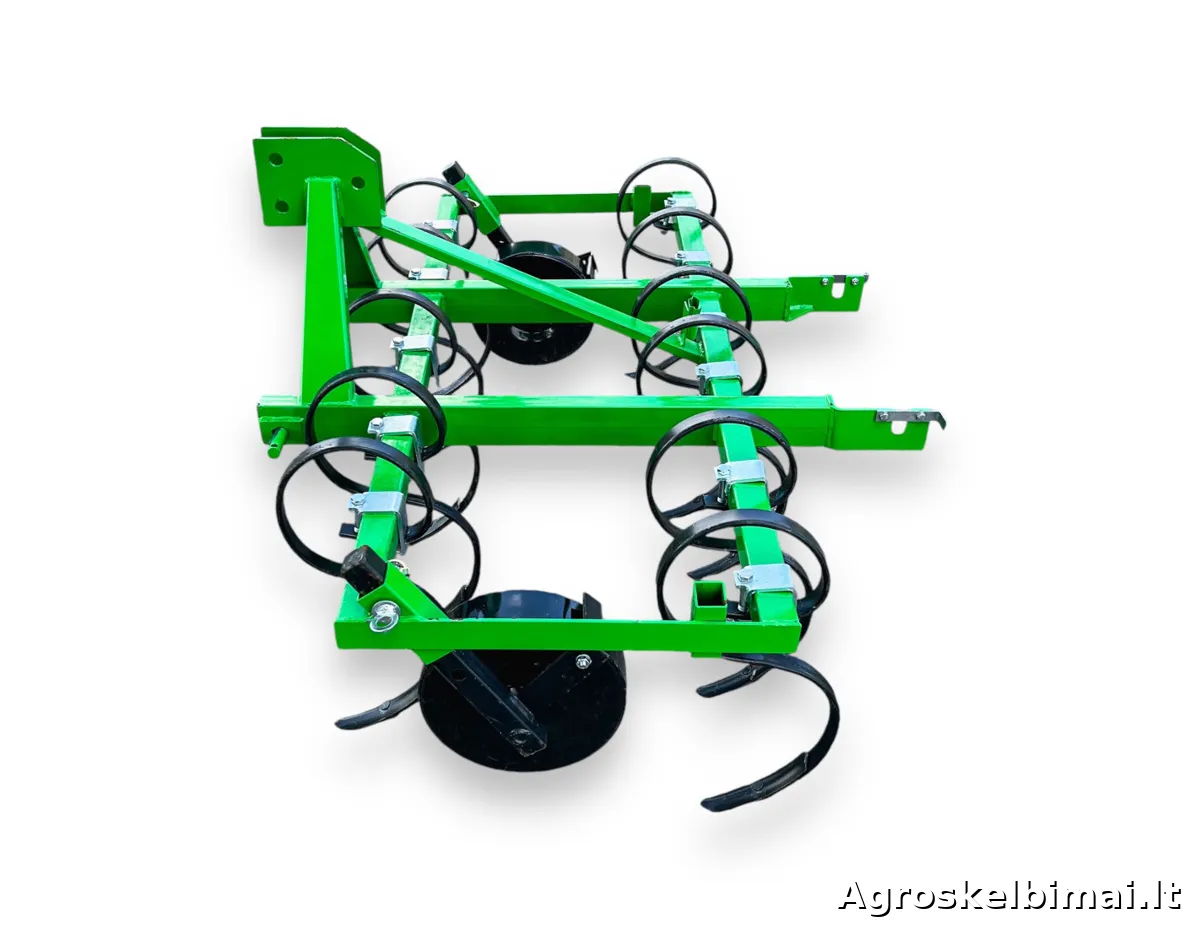 Dviejų eilių, 1,5m pločio kultivatorius "Farmostal". Kultivatorius su spyruokliniais "S" formos dantimis skirtas purenti, trupinti ir maišyti paviršinį dirvos sluoksnį.