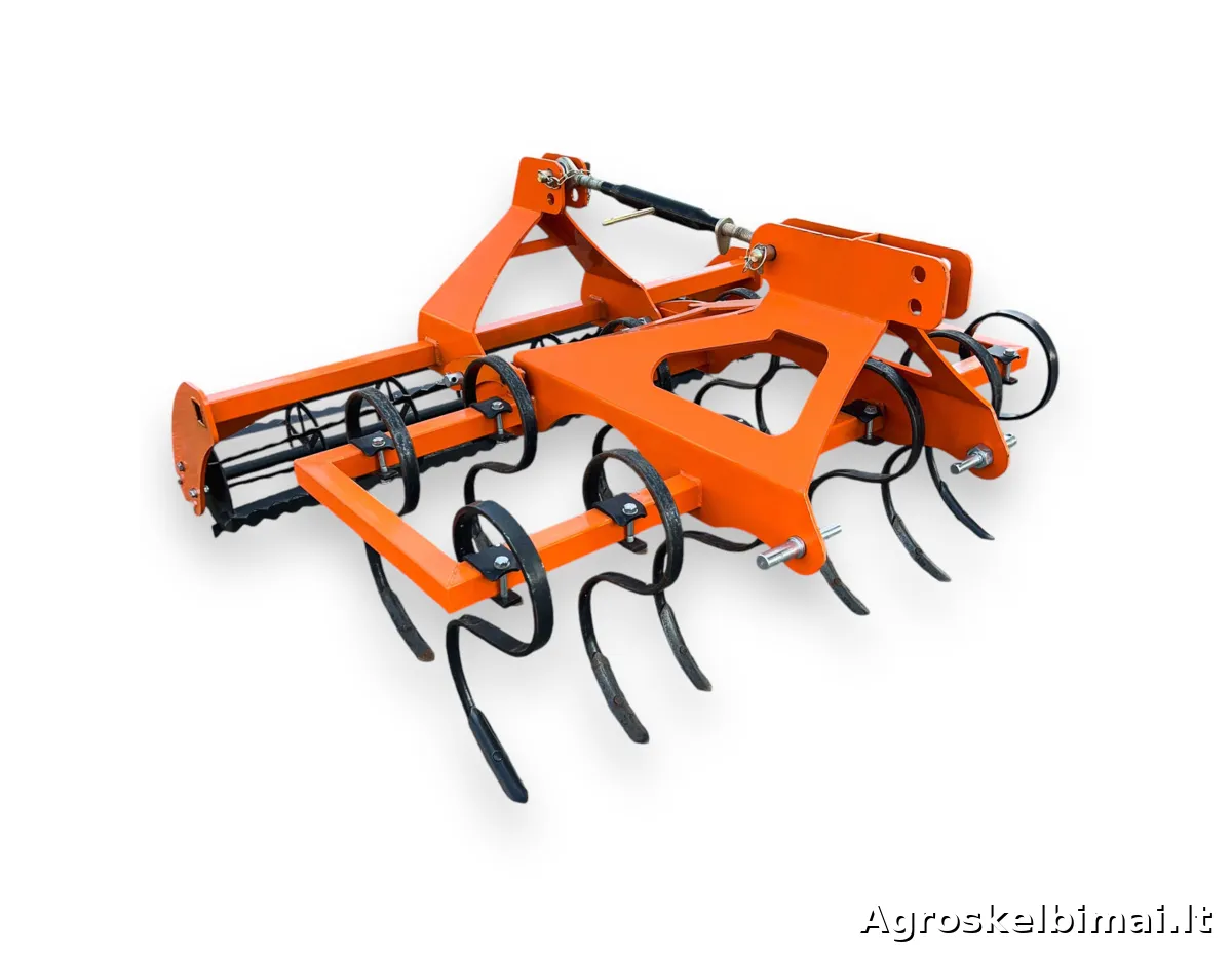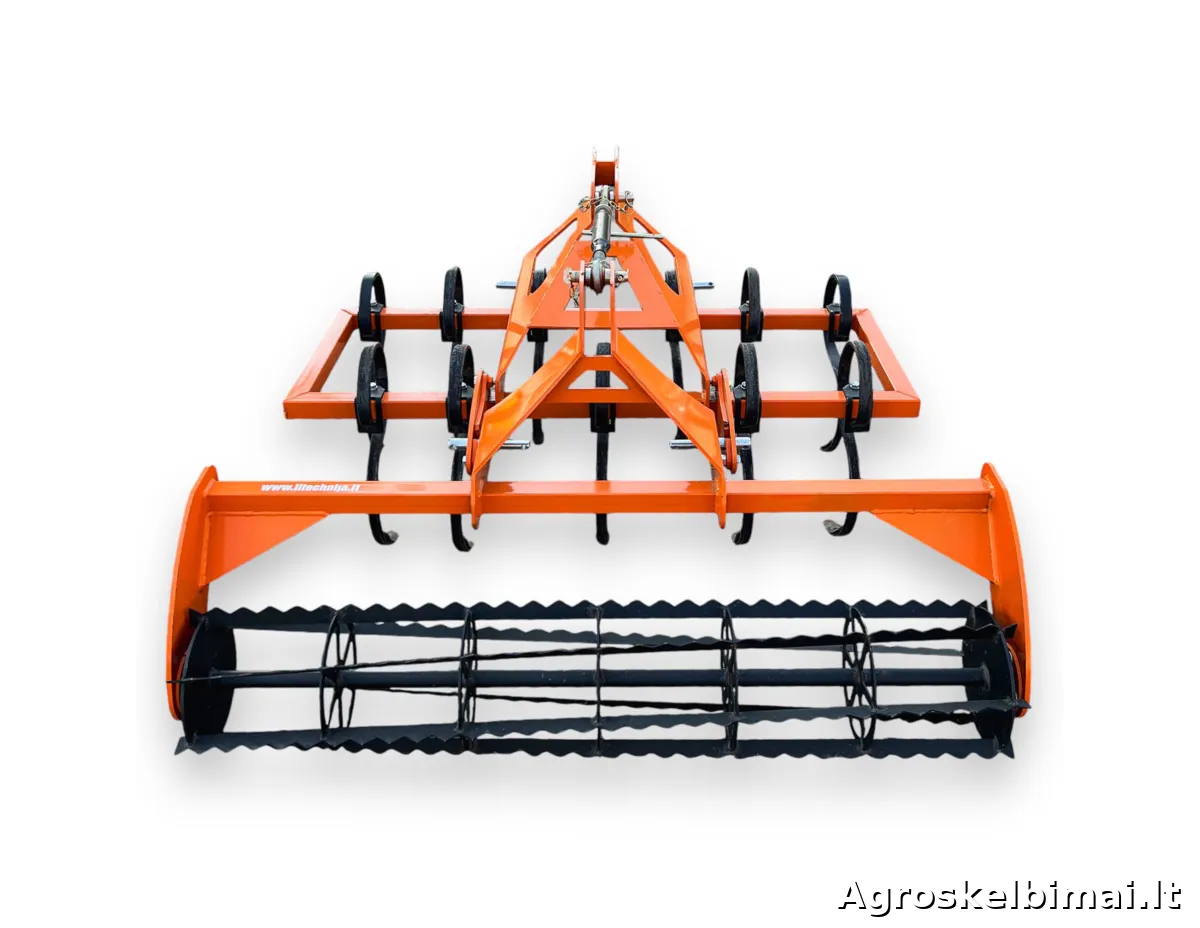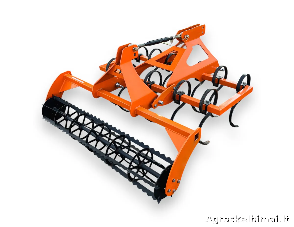 Dviejų eilių, 1,5m pločio kultivatorius su volu "Taret". Kultivatorius su spyruokliniais "S" formos dantimis skirtas purenti, trupinti ir maišyti paviršinį dirvos sluoksnį.