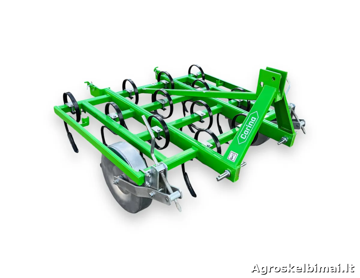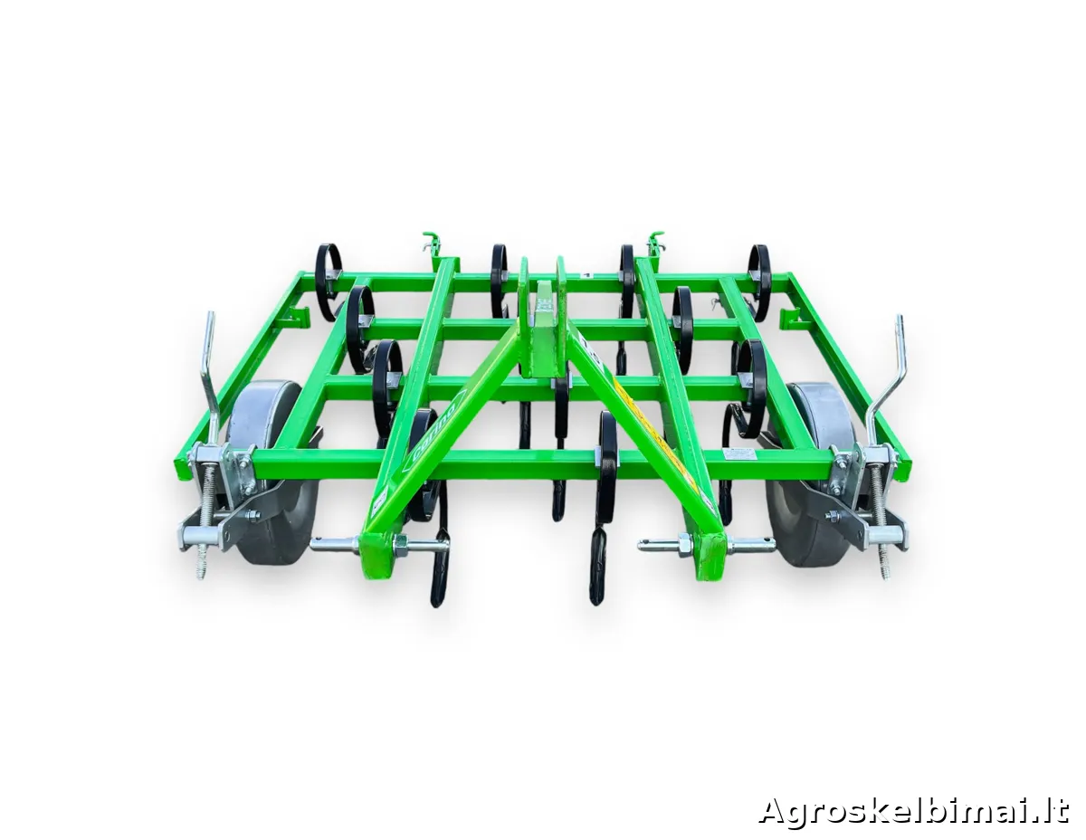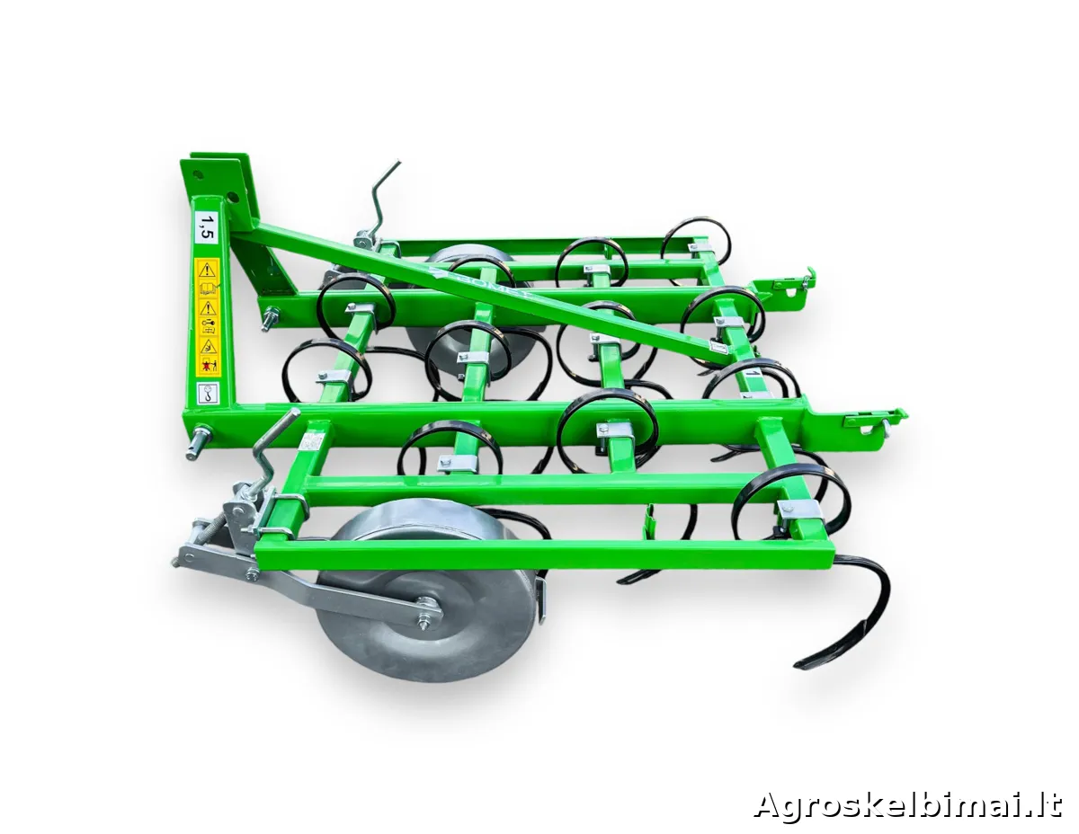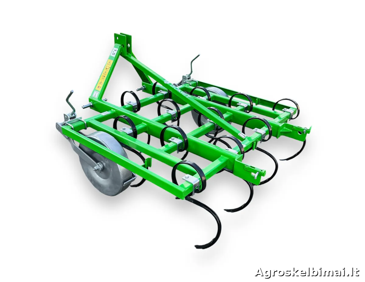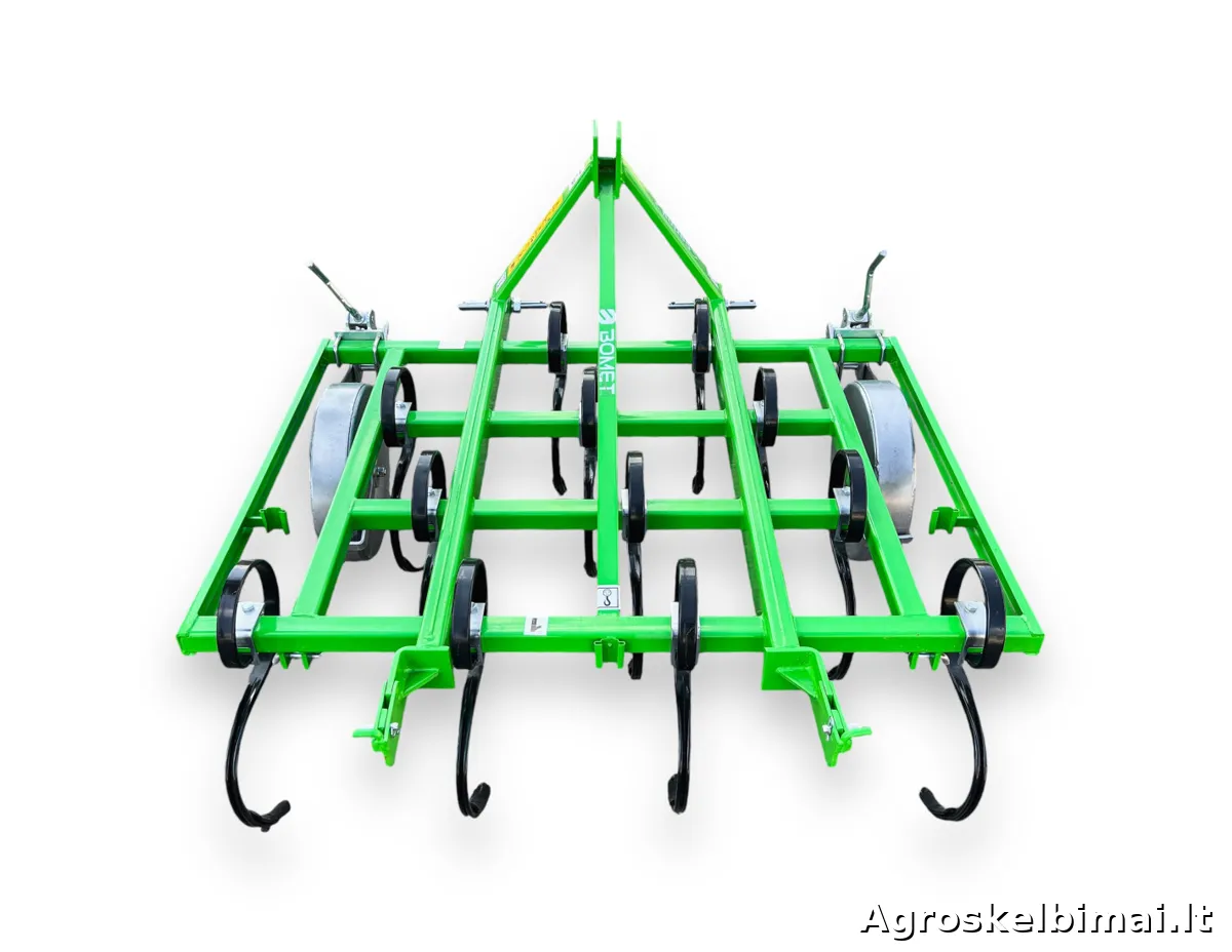 Keturių eilių, 1,5m pločio kultivatorius "Bomet". Kultivatorius su spyruokliniais "S" formos dantimis skirtas purenti, trupinti ir maišyti paviršinį dirvos sluoksnį.