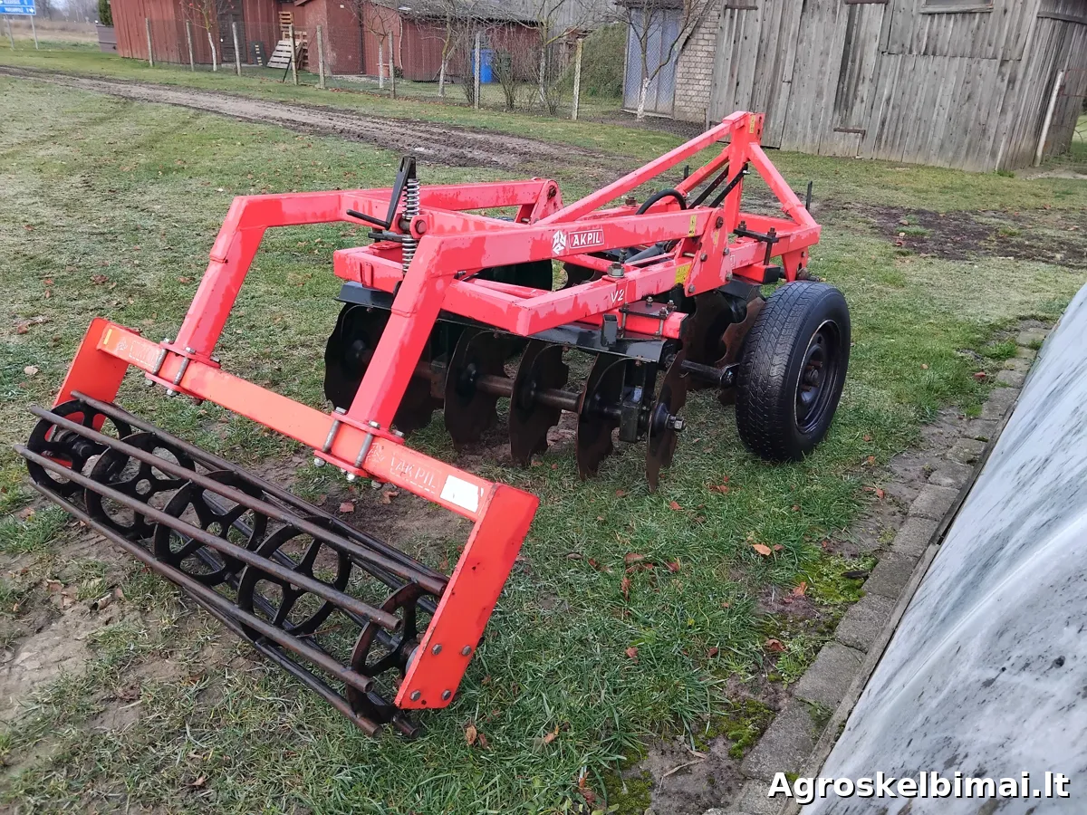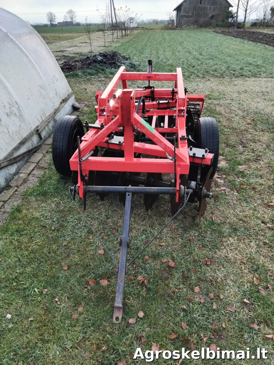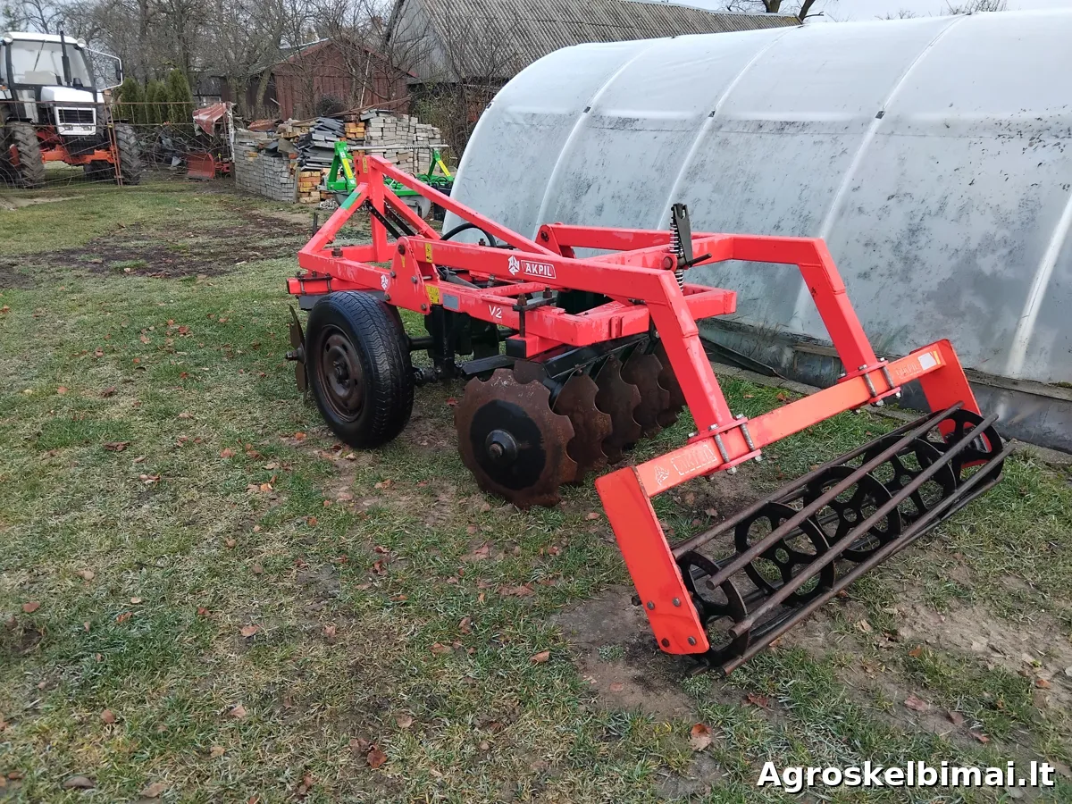 Parduodamas mažai naudotas diskinis skutikas su volu gale, prie mini traktoriaus, t-25 ar kito. Darbinis plotos 1,40m. Galima naudoti kaip tempiamą ar pakeliamą padargą.